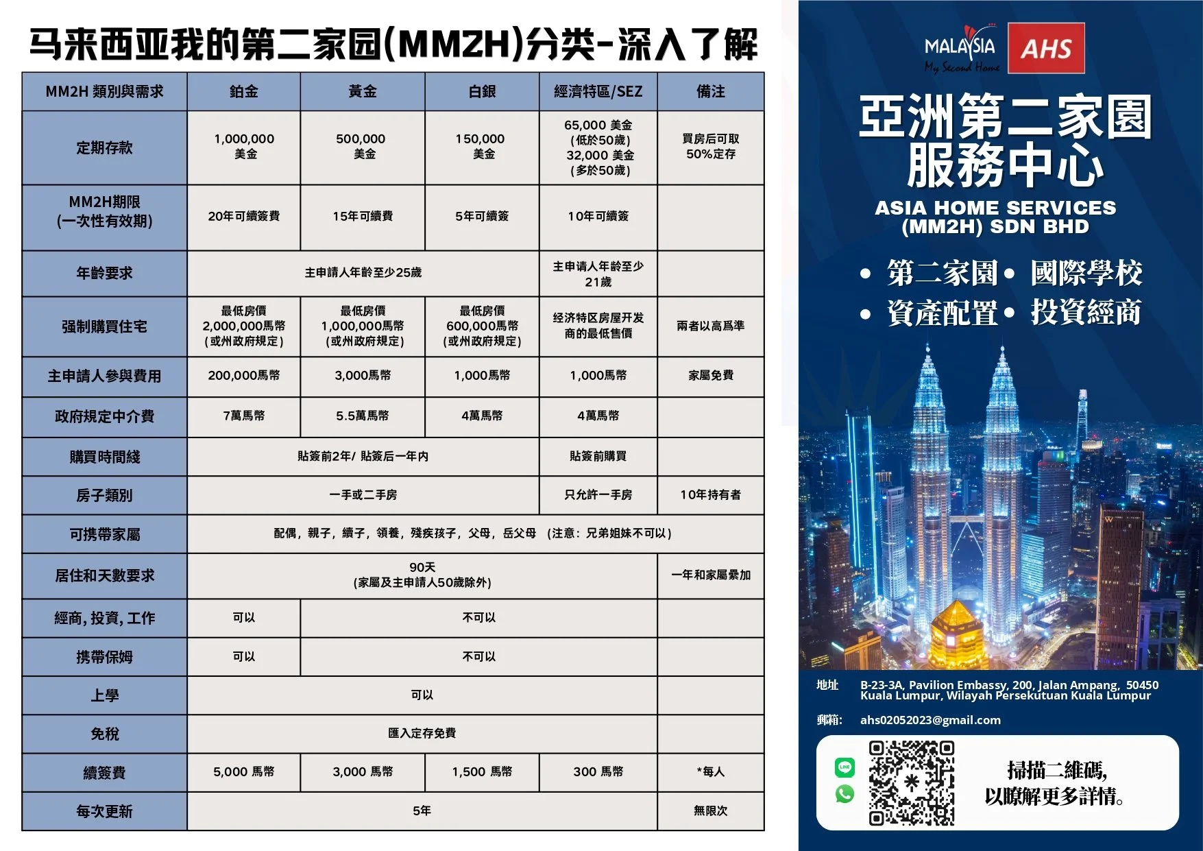 各級別MM2H財務要求(Silver、Gold、Platinum)